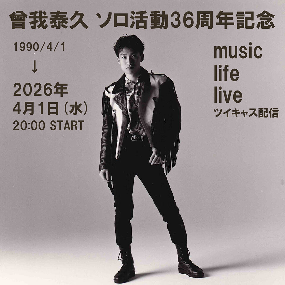 4月1日(水)に「曾我泰久 ソロ活動36周年記念 music life live」ツイキャス配信が決定しました。